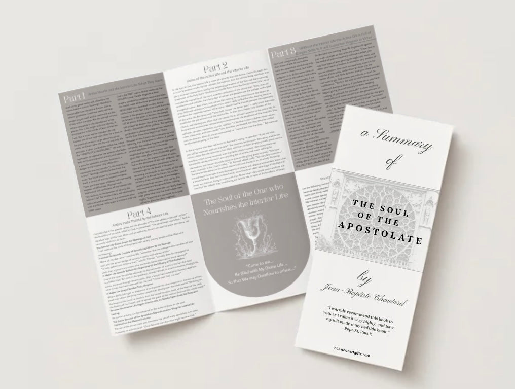One pamphlet that summarizes the Soul of the Apostolate by Jean-Baptiste Chautard! This has all the best analogies and key points that he offers for the Apostolic Worker!