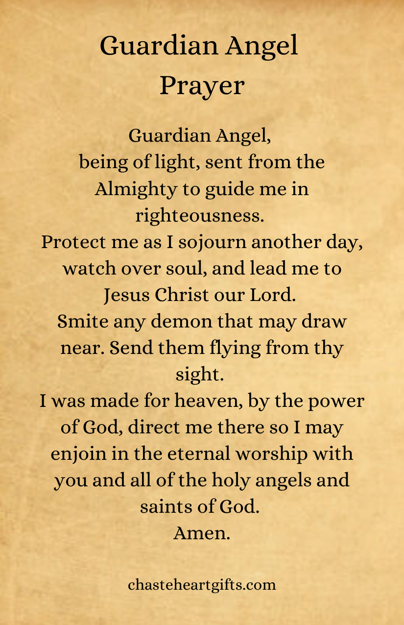 Guardian Angel Prayer Card. 4.25in by 2.75in