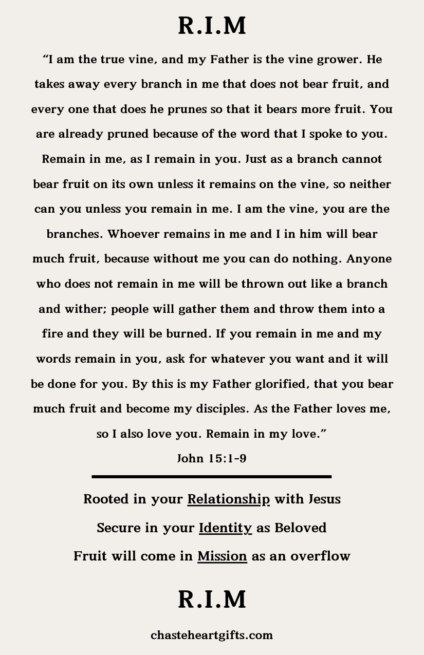 Relationship Identity Mission (R.I.M.) Card. 4.25in by 2.75in