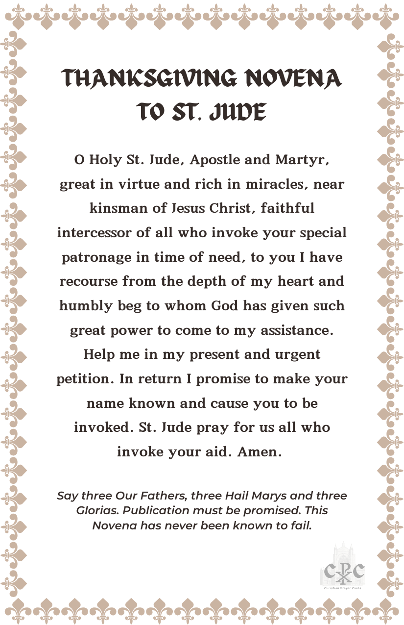 Thanksgiving Novena to St. Jude. Set of 33 cards.